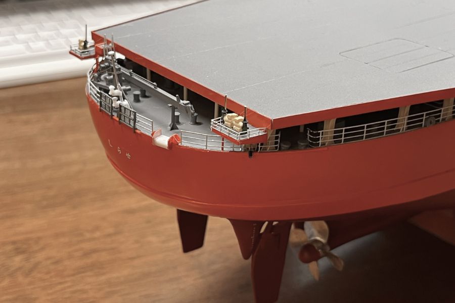 今年5月に製作を開始した砕氷艦「しらせ」1/200スケール模型は、この3連休で艦尾周りの作業がひと段落しました。