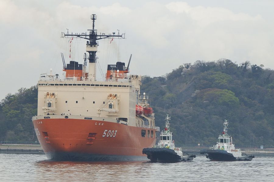 「しらせ」の離岸・接岸では以前から海上自衛隊の曳船ではなく、民間のタグボートが作業を行っています。