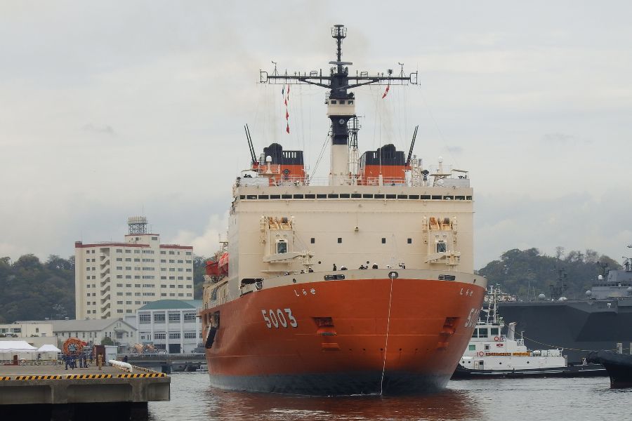 第65次南極地域観測協力を実施した砕氷艦「しらせ」が4月8日に帰国し、横須賀基地に接岸しました。