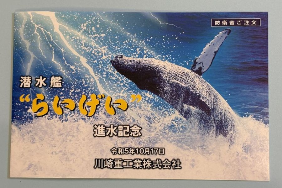 潜水艦「らいげい」進水記念絵はがきの表紙です。