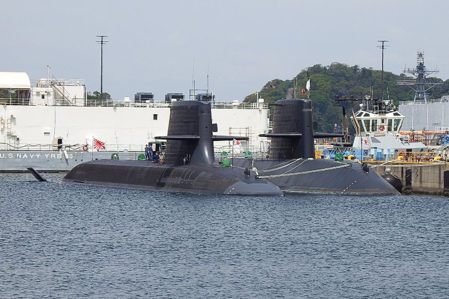少し進むと再び”たいげい”型潜水艦です。こちらは「じんげい」と推察されます。セイルの艦ナンバー消去の痕跡が見られることが理由です。こちらが「じんげい」なら先ほどの”たいげい”型は「たいげい」という筋読みです。