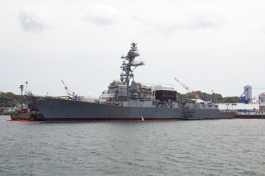 アメリカ海軍のアーレイ・バーク級ミサイル駆逐艦「マッキャンベル」(USS McCampbell, DDG-85)が停泊していました。近代化改修のため2020年7月2日に横須賀を離れましたが、2024年1月25日、巡洋艦「アンティータム」の帰国にあわせて再び横須賀に配備されました。
