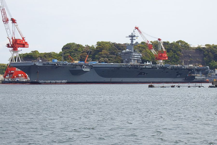 1年前にここを通った時は、原子力空母「ロナルド・レーガン」(USS Ronald Reagan, CVN-76) が停泊していましたが、今回は、2024年11月22日横須賀に戻った「ジョージ・ワシントン」(USS George Washington, CVN-73)が停泊していました。同艦は炉心交換・大規模オーバーホール(RCOH:Refueling Complex Overhaul)のため日本を離れていました。
