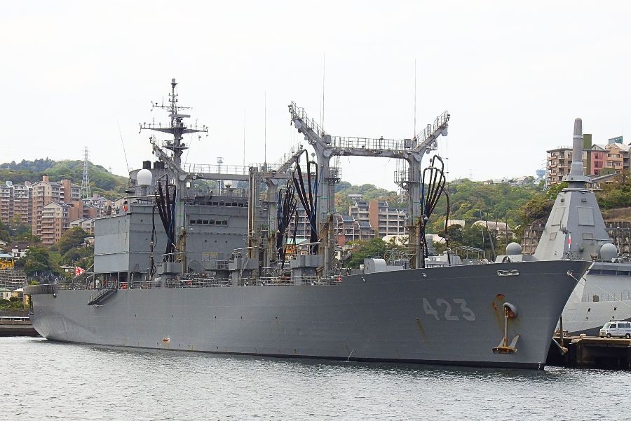 補給艦「ときわ」が出船で接岸していました。艦齢延伸工事が施されており、もうしばらくはこの艦影を見ることが出来るでしょう。