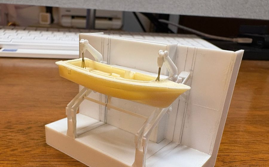 現在のブログ型ホームページより随分前のホームページに掲載したことがありますが、搭載艇をダビッドに取り付けるにあたり、事前に製作してみた基準模型です。