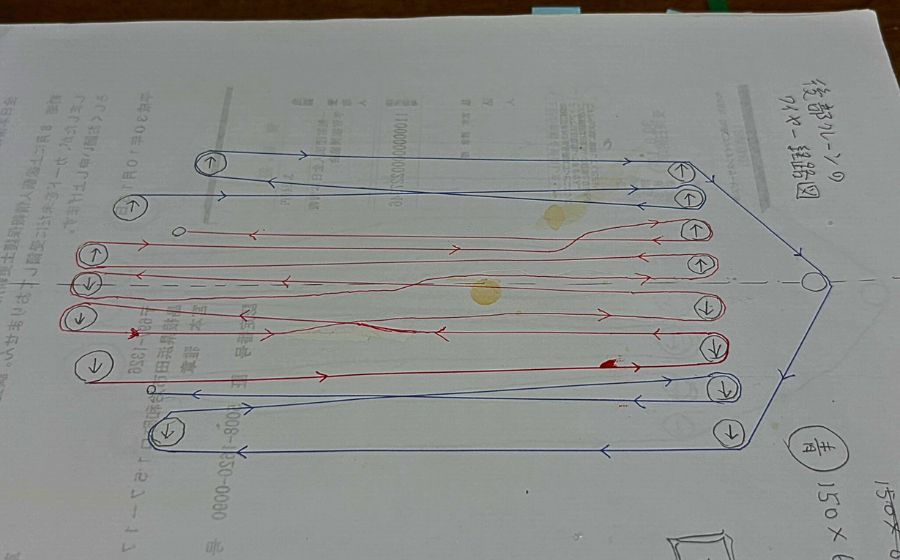 デッキクレーンのワイヤーの張り方は画像等で把握してメモを作成し、それに基づいて張っています。