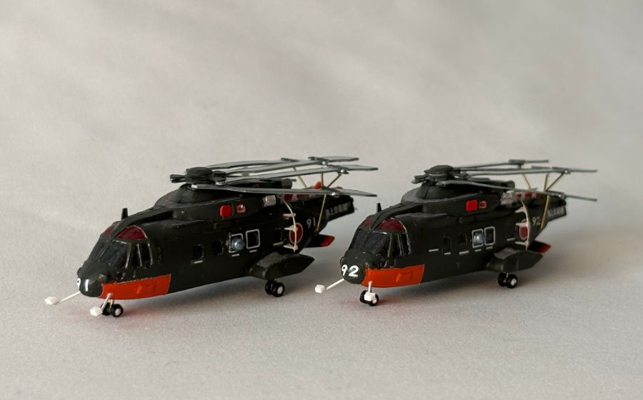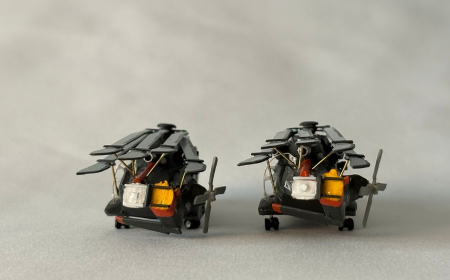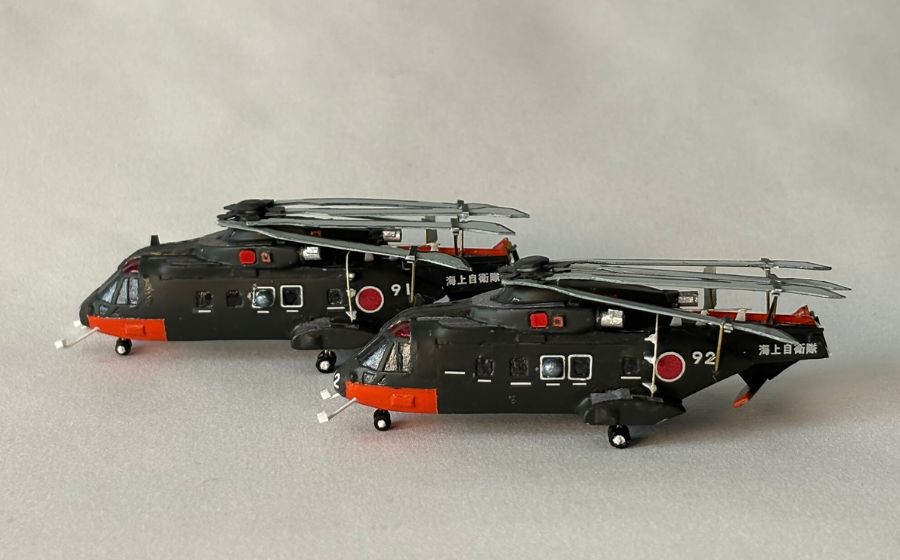 格納庫内にはローターを折りたたんだヘリコプターを2機設置することとし、91号機と92号機を製作しました。