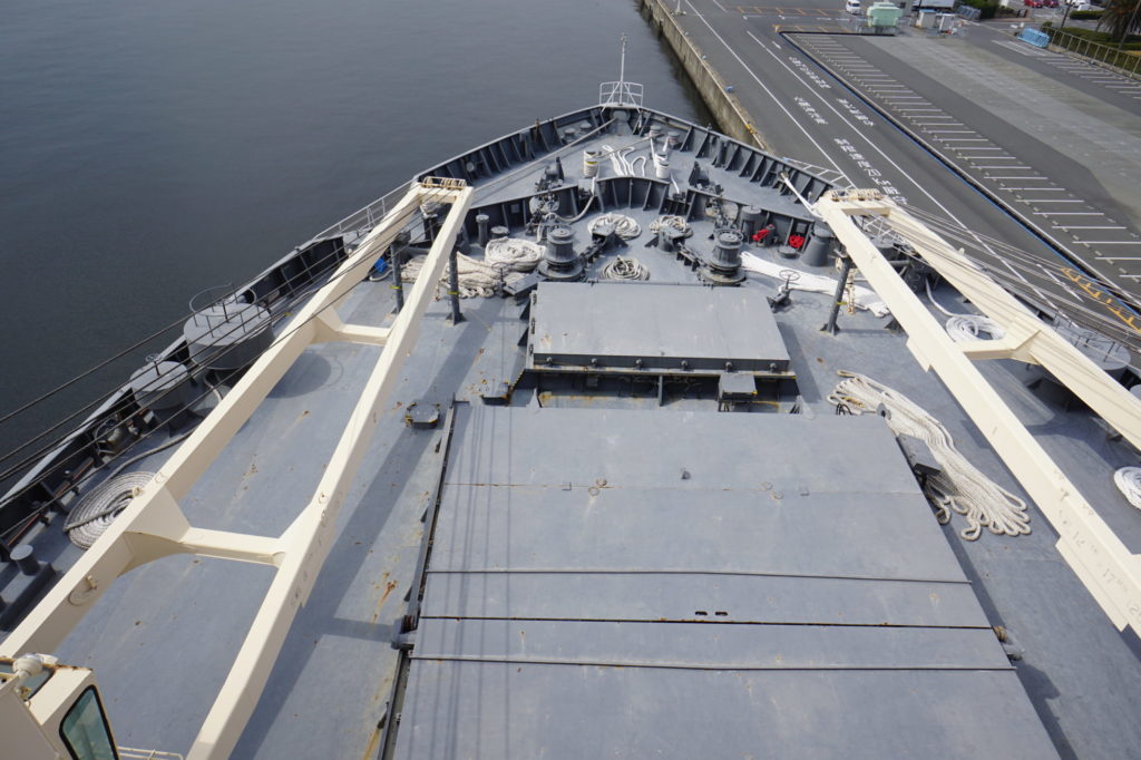現「しらせ」の丸い艦首形状にすっかり見慣れてしまっていたので、普通のフネ並みのとがった形状を久しぶりに見て懐かしく思えました。